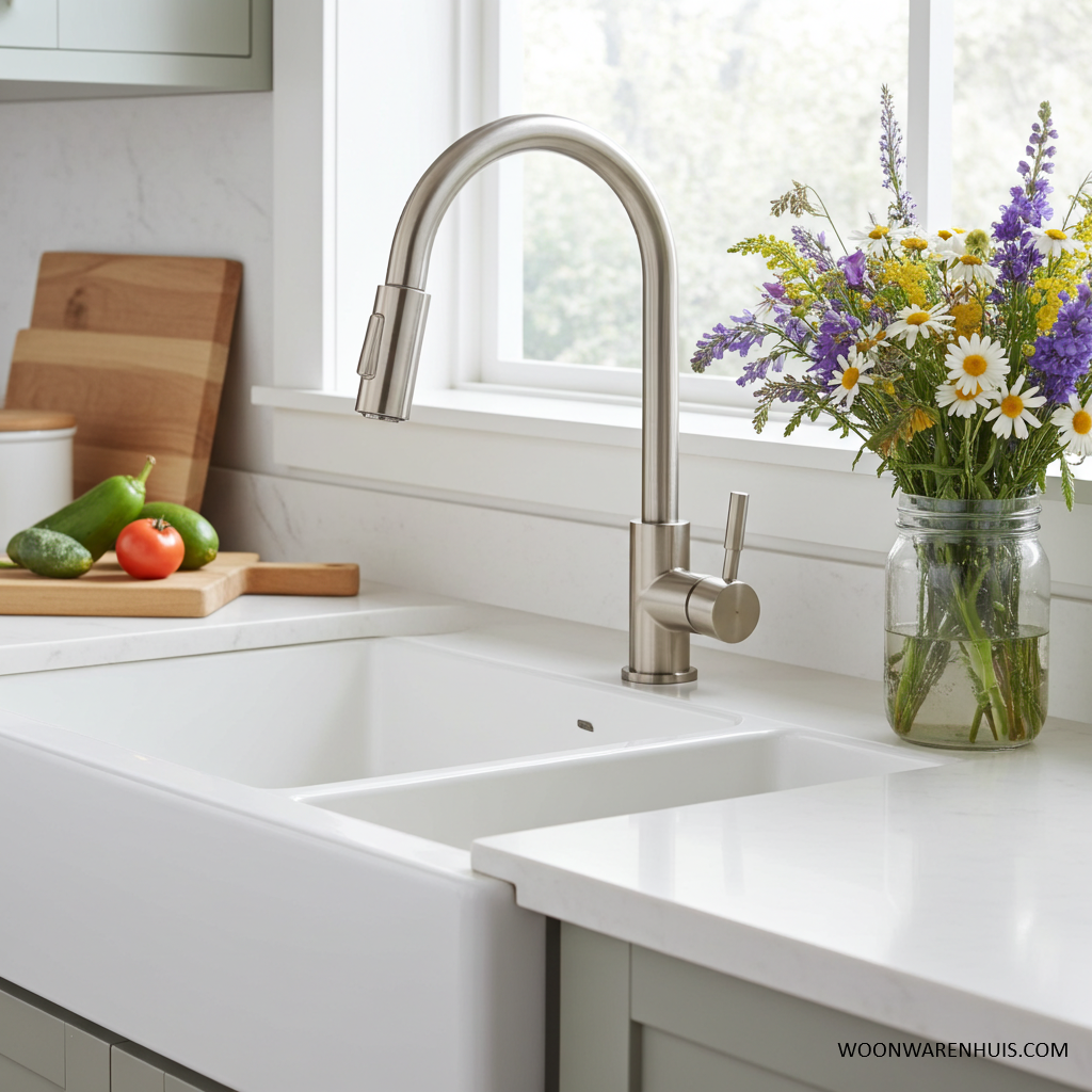Alles over dit artikel op een rij: • Keukenkraan • Breedte 5 cm • Hoogte 43 cm • Diepte 24 cm • Opbouw • RVS • Messing • Incl. bevestigingsmateriaal • Aansluiting onder • Kraan met uittrekbare handdouche • 5 jaar Fabrieksgarantie • Wiesbaden • Via pakketpost in 1-2 dagen