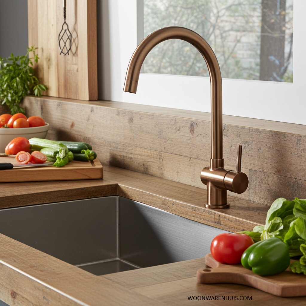 Alles over dit artikel op een rij: • Keukenkraan • Breedte 5 cm • Hoogte 37 cm • Diepte 26 cm • Opbouw • Brons en • Koper • Messing • Incl. bevestigingsmateriaal • Aansluiting onder • 5 jaar Fabrieksgarantie • Wiesbaden • Via pakketpost in 1-2 dagen