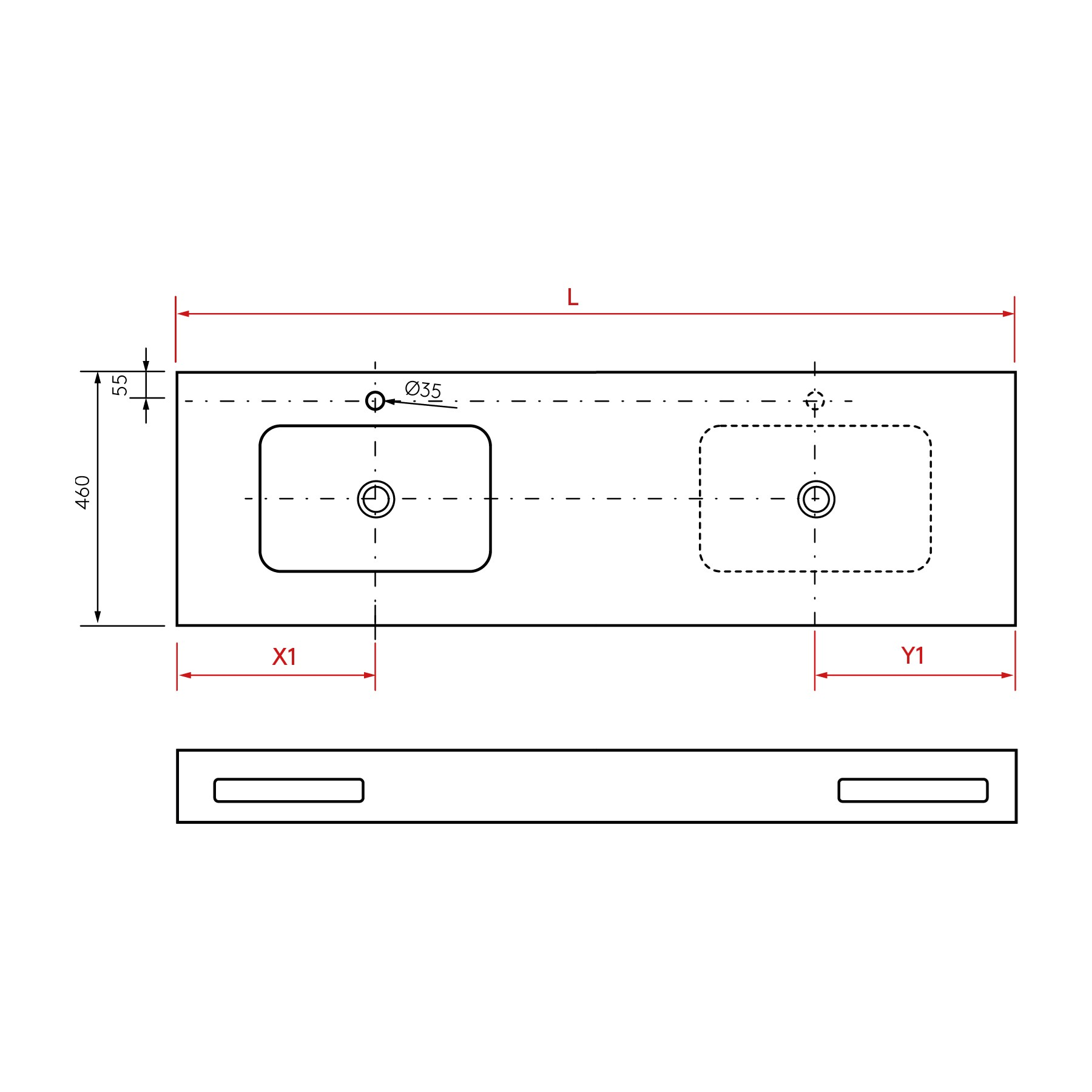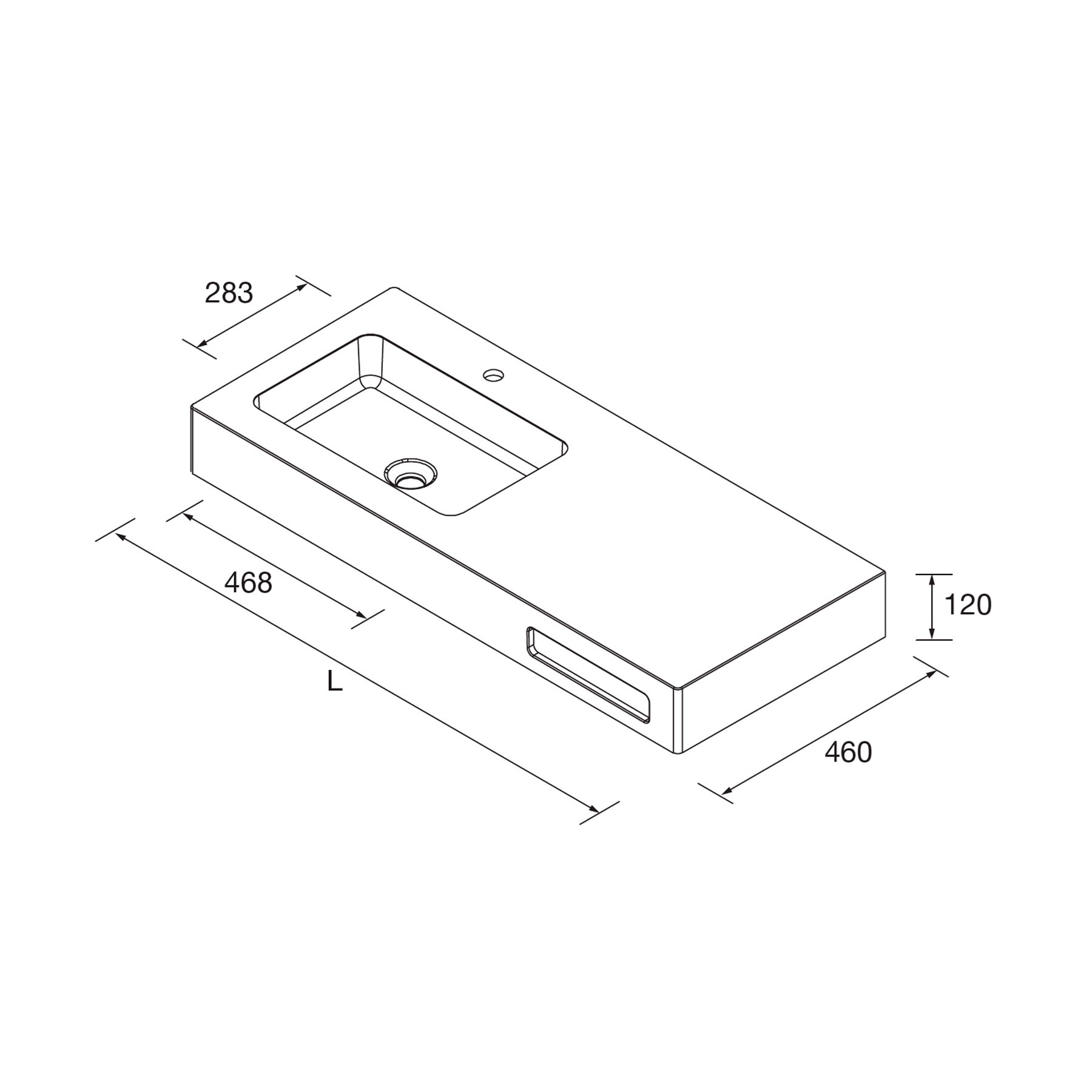 - 1x verdikte solid surface wastafel Naila 160 cm breed - met wasbak op links en handdoek uitsparing op rechts.