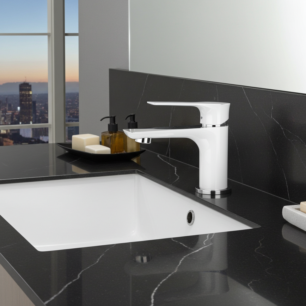 Wastafelmengkraan Xellanz Casma laag in mat wit en chroom